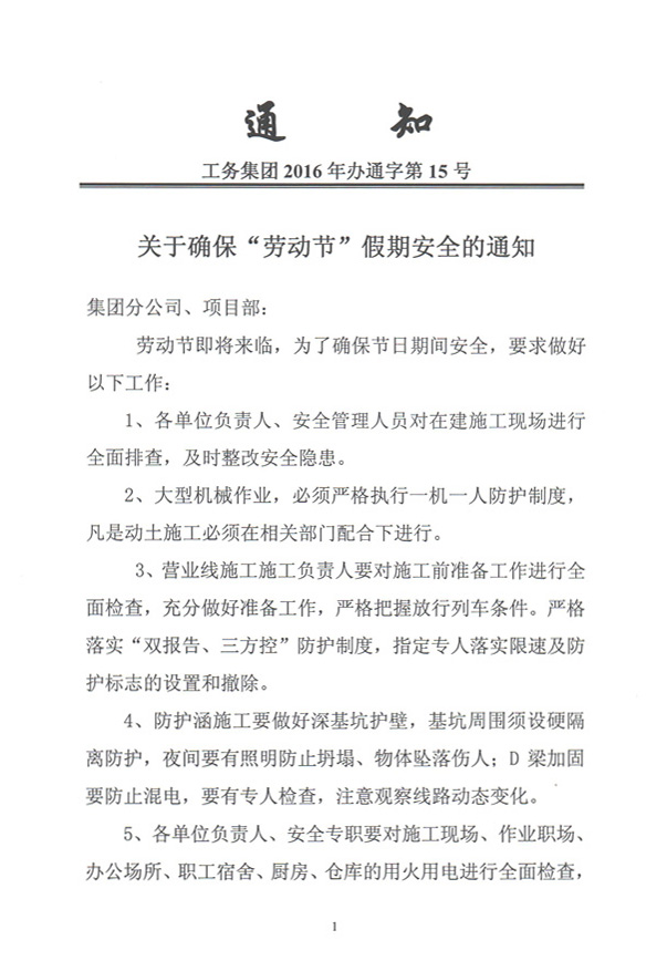 下一篇:工務(wù)集團(tuán)2016年辦通字第16號(hào)《關(guān)于加強(qiáng)抗洪防汛工作的通知》...