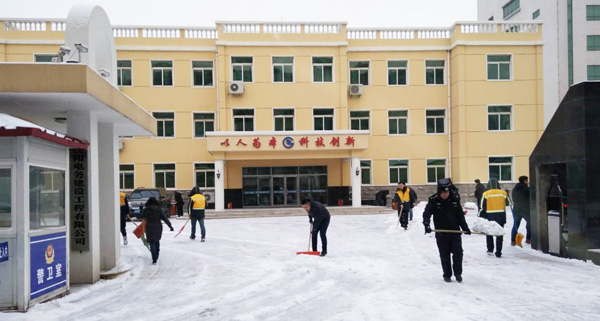 2018年1月8日凌晨,沈陽(yáng)迎來(lái)入冬以來(lái)第一場(chǎng)“認(rèn)真的雪”。一大早,集團(tuán)員工們自發(fā)提前來(lái)到單位加入到掃雪的隊(duì)伍中。有的拿起笤帚,有的揮起鐵鍬,有的負(fù)責(zé)倒雪。大家各盡其責(zé),現(xiàn)場(chǎng)干勁十足,熱火朝天。很快厚厚的積雪就被清掃完畢。