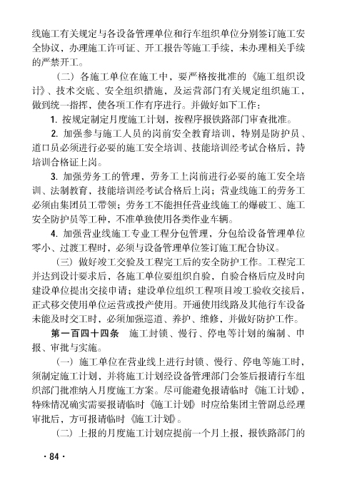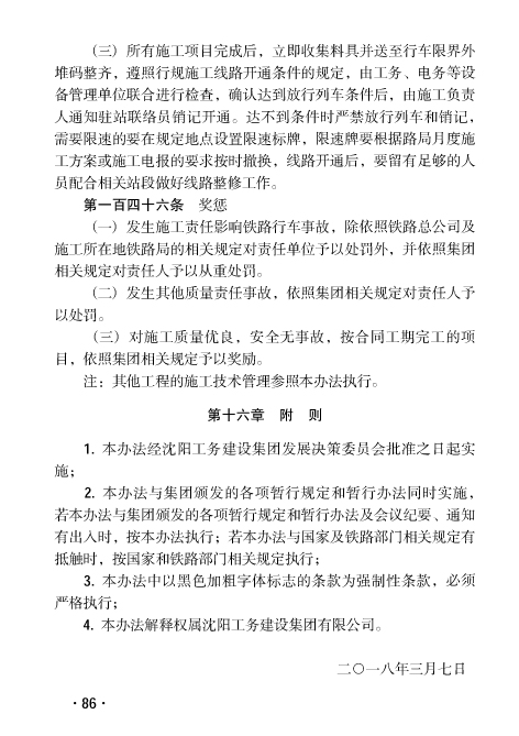 沈陽(yáng)工務(wù)集團(tuán)《鐵路既有線施工技術(shù)管理的暫行辦法》